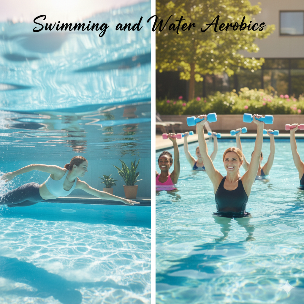 - Swimming and water aerobics (buoyancy reduces joint load)