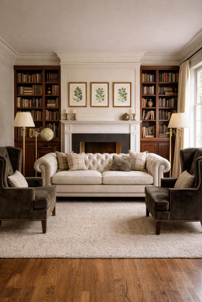 Classic furniture styles are recognizable for their clear silhouettes and balanced detailing. Think rolled-arm sofas, tailored English arms, wingback chairs, camelback settees, and pedestal dining tables. These pieces remain relevant because they are neither aggressively modern nor overly ornate; they can read formal or relaxed depending on fabric, finish, and styling.