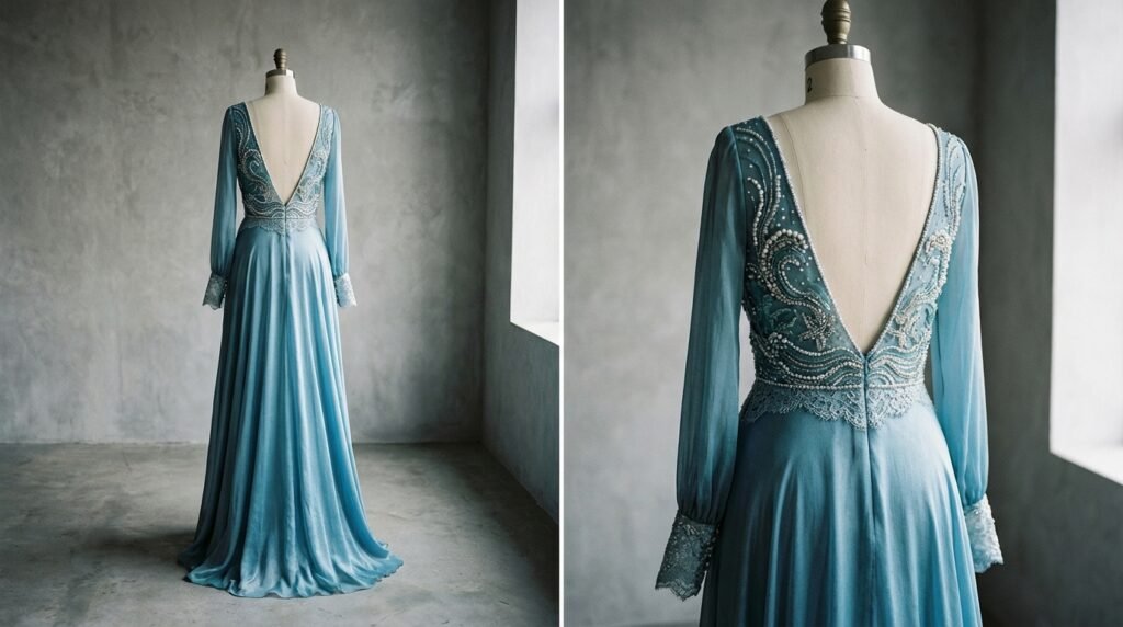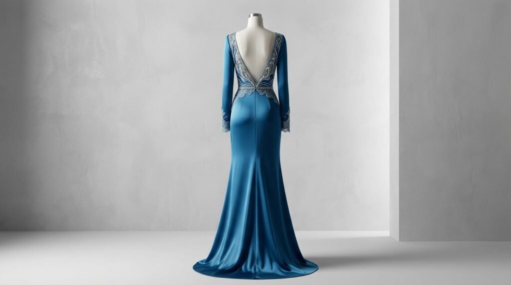 - Ignoring the back view – The back of an evening gown is highly visible during ceremonies, photographs, and social interactions, yet often receives less design attention.