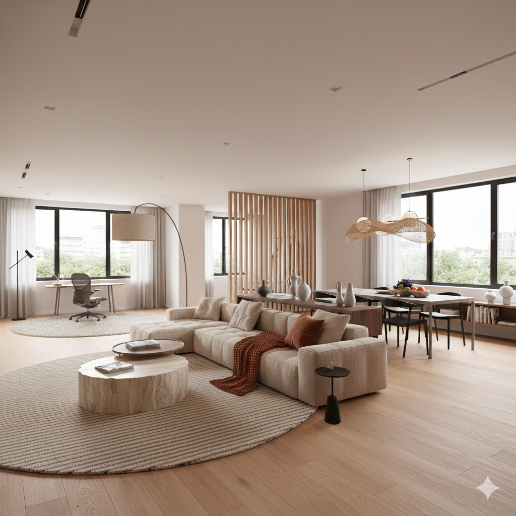 Open-plan layouts continue to define modern architecture, but the trend is becoming more nuanced. Rather than a single, undifferentiated space, homeowners want flexible zones that support multiple activities—work, dining, entertaining, and relaxation—without sacrificing cohesion. This is achieved through subtle dividers such as open shelving, slatted wood screens, area rugs, and changes in ceiling treatment or lighting.
