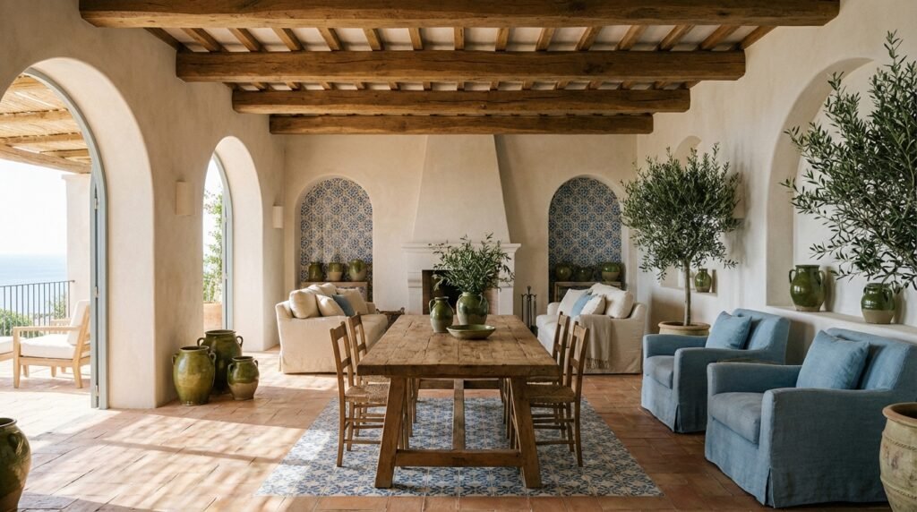 Mediterranean interior design is a style defined by sun-washed color, organic textures, and an architectural sensibility that blurs the line between indoors and out. Rather than relying on fleeting trends, it draws from regional building traditions: plastered walls, stone floors, timber beams, arched thresholds, and hand-finished surfaces. It is a decorating language that values authenticity and ease, creating spaces that feel welcoming, resilient, and beautifully imperfect.