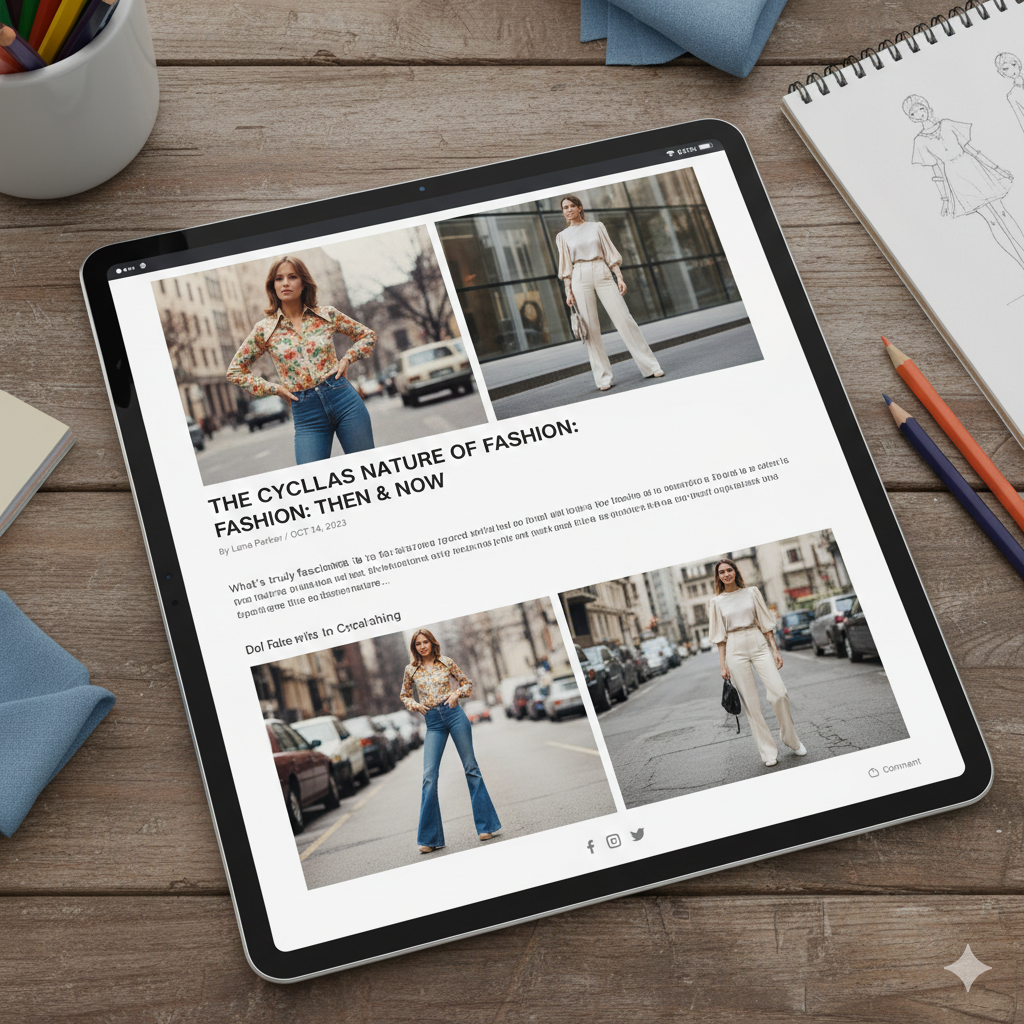 History of fashion, sustainable fashion trends, visual language of style, cyclical fashion industry, modern style evolution.