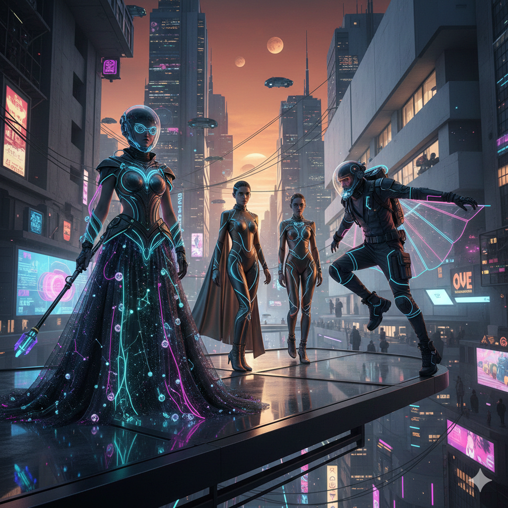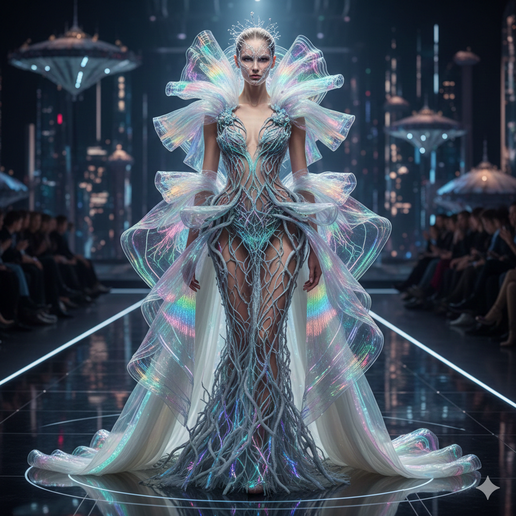 Many futuristic collections reinterpret heritage craft through new technologies—laser-cut lace, 3D-printed embroidery, or smart kimonos that marry tradition and innovation.